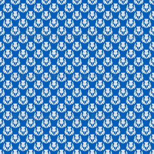 The national flower of Scotland white thistle is crowned by spiky white leaves on Scottish flag blue background