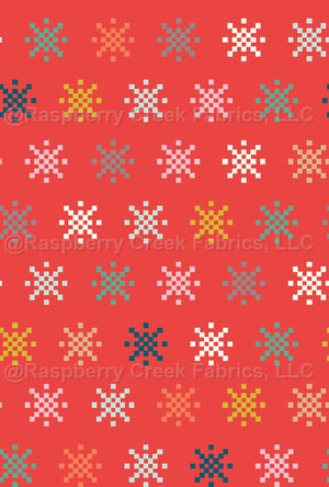 Snowflake Christmas sweater coordinate pattern in bright festive holiday colors.