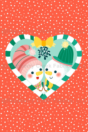 fat quarter size Christmas design with a cute couple of snowman inside a candy cane heart