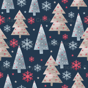 Snowy Winter Wonderland Trees on Navy