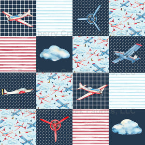 Soaring Vintage Airplanes Patchwork Navy
