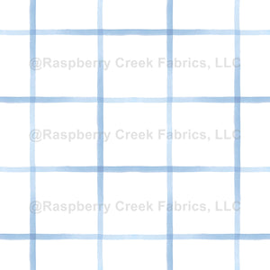 Watercolor Hand Drawn Illustration of Soft Blue Narrow Stripes. Rustic Plaid, Check, Gingham