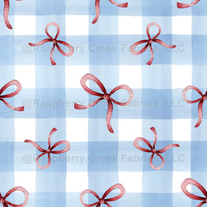 Soft Blue Stripes and Bow - Plaid, Check, Gingham - French Country - Rustic - Watercolor Hand Drawn