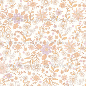Soft boho retro ditsy flowers and leaves - lilac orange white