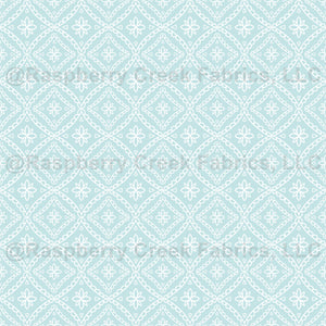 A pastel blue and white tile damask pattern of modern white flowers in hand drawn squares. Part of my Lydia Collection.
