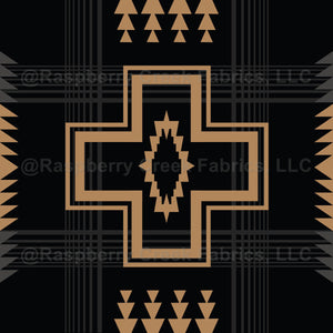 Southwestern blanket vibes or sitting around the campfire in a cozy black and camel brown design. Navajo blankets inspired this geometric design. Ranch lifestyle or Cabin style decor or outerwear.