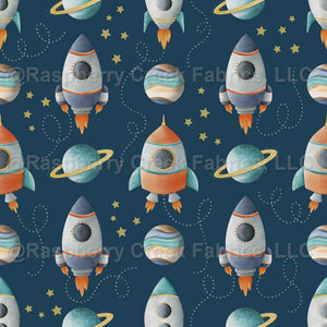 Space Boy - Rockets, Planets and Stars on Navy Blue