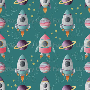 Space Girl - Rockets, Planets and Stars on Dark Teal