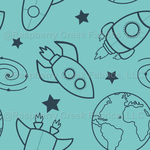 Space Girl & Space Boy - Playful Retro Rockets on Light Teal