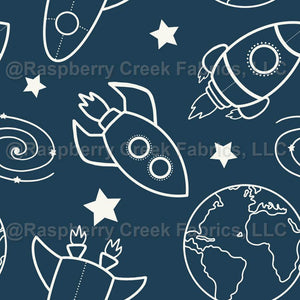 Space Girl & Space Boy - Playful Retro Rockets on Navy Blue
