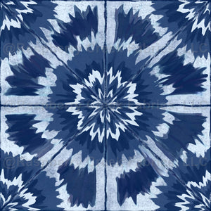 This abstract shibori design in traditional shades of blue looks like it could be a fountain or fireworks, or even a very ruffly flower.
