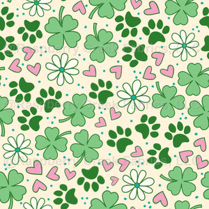 Spring Shamrocks and Animal Paw Prints Green and Pink