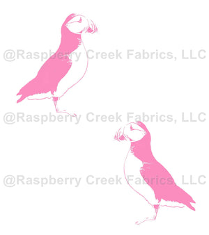Stamp effect created from photo taken by the artist at Machias Seal Island. Puffins are about 2 inches wide and 3 inches tall; you may wish to scale down for children's clothing. Coordinates with Pinksicle Pink solid in the Pinksicle Garden collection.
