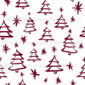 Christmas Holiday Trees Starry Forest Snow - cranberry red