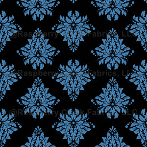 Steel Blue Damask on Black