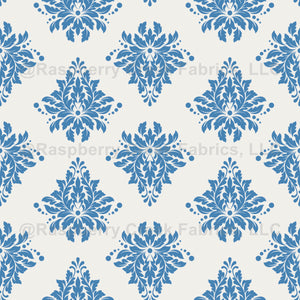 Steel Blue Damask on Ivory