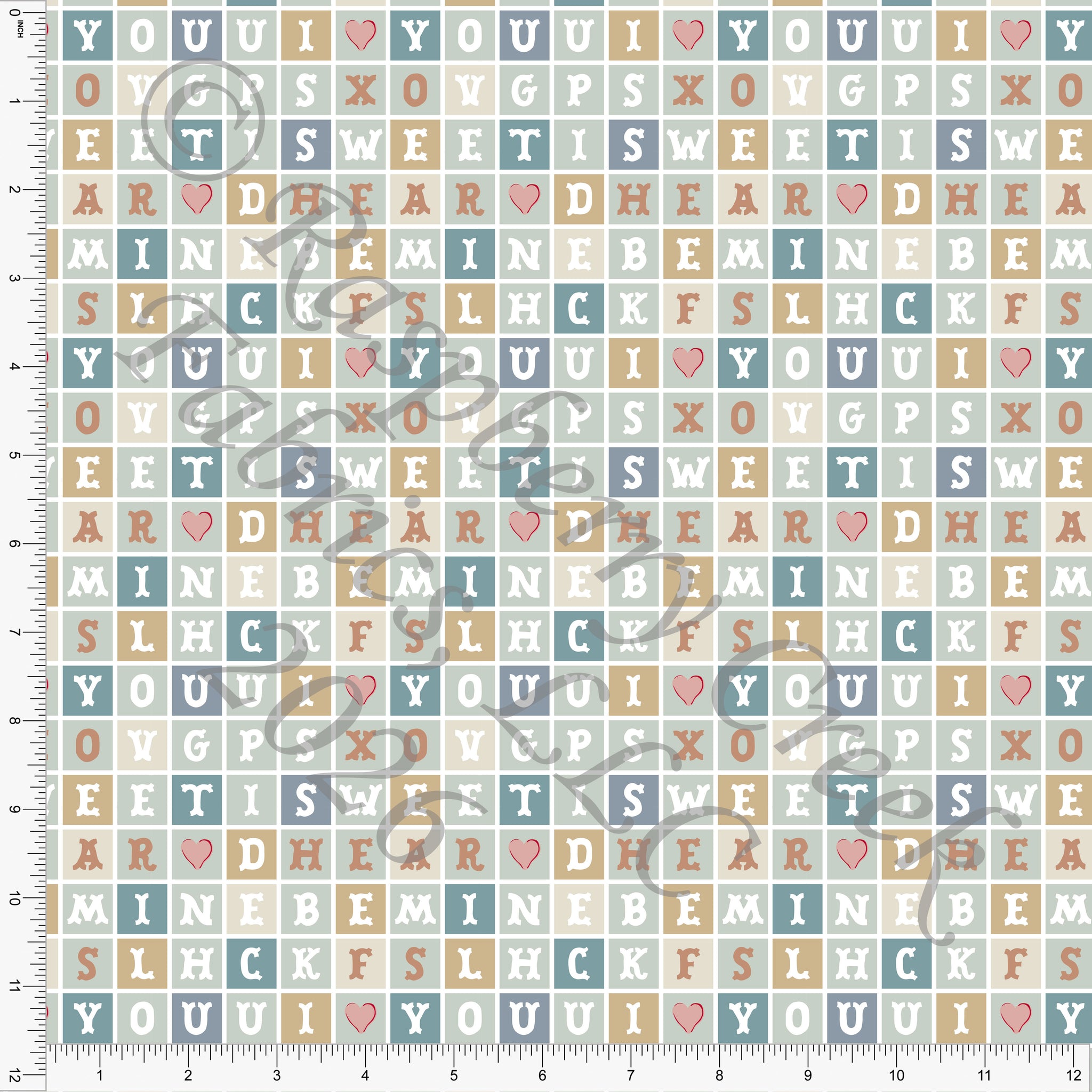 Steel Blue, Khaki, Light Sage, Word Search, My Little Valentine by Nice To Michiyo for Valentines 2026 CLUB Fabrics