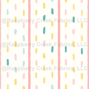 Stripes and Dashes - in a soft pallette of Pink, Yellow, Blue, Green on a soft White background