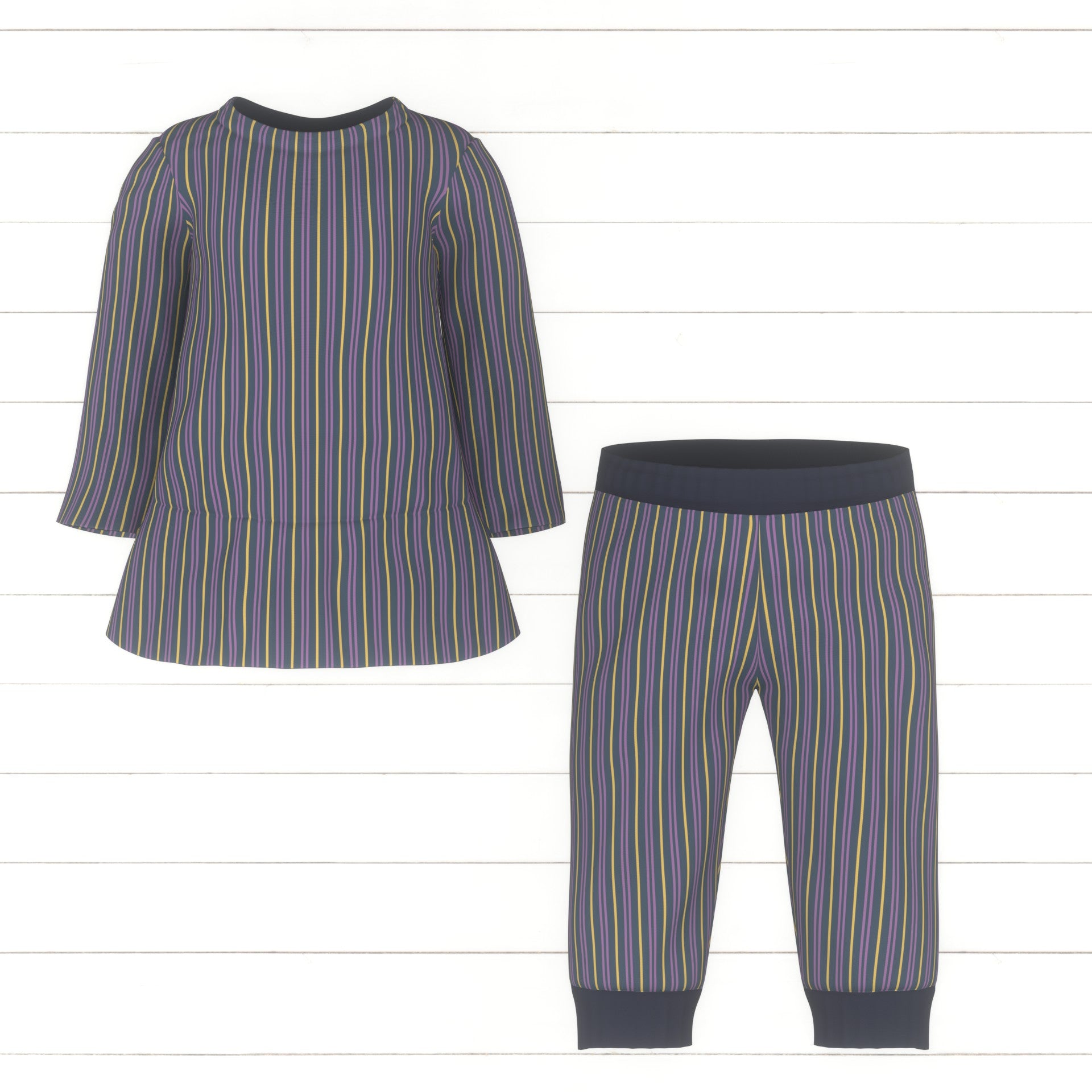 Stripes, narrow, navy, yellow and lilac