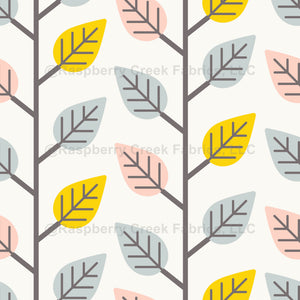 Stylized autumn leaves in muted pastel tones on a cream background. A clean, modern pattern ideal for seasonal or nature-inspired decor.
