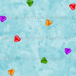 Multicolor sugarplums create a fun ditsy design for winter and Christmas on an ice blue marbled background.