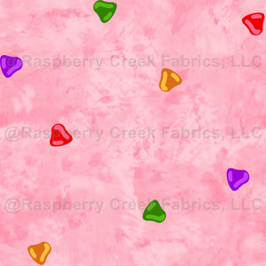 Multicolor sugarplums create a fun ditsy design for winter and Christmas on a pink background.