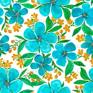 Summer Dream-Aqua Blue and yellow-gold wildflowers on white