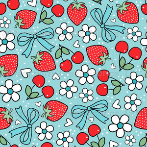 Summer Strawberries and Cherries in Red and Blue