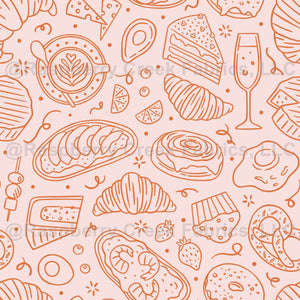 Outlined doodle fabric pattern with delicious sweet and salty food for a perfect sunday brunch.