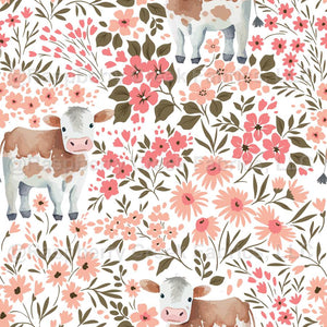 Sweet Calf - Baby Cow - Among Blush Pink Flowers