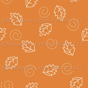 Creamy hand drawn leaves are swirling on an orange background. From the Sweater Weather Collection by Judy Patterson from JustJudifer