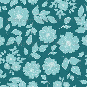 Teal and White Flower Blooms Floral on Dark Teal Background