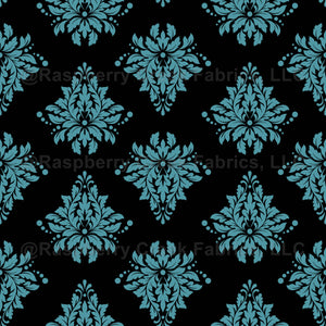 Teal Damask on Black