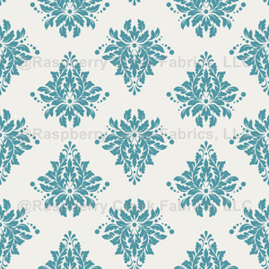 Teal Damask on Ivory