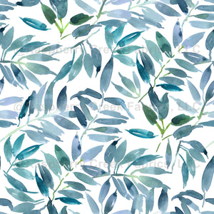 teal tropical flora - watercolor leaves in emerald and blue shades - painted foliage, nature, forest