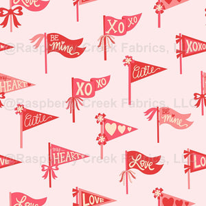 Team Love Valentine's Retro Pennants, Flags in Red, Pink and Cream on Light Pink