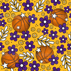 Team Spirit Basketball Floral in LA Los Angeles Lakers Colors Purple and Yellow Gold