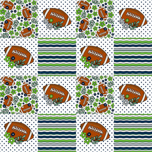 Team Spirit Football Patchwork Flowers and Stripes Seattle Seahawks Colors Navy Blue Green Silver Grey for Cheater Quilt or Blanket