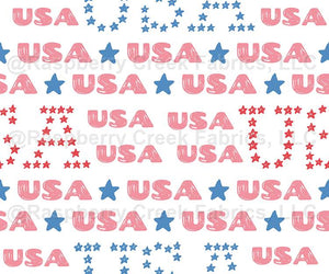 Team USA July 4th hand lettered star text, Sparkler Collection, pink and blue on white background