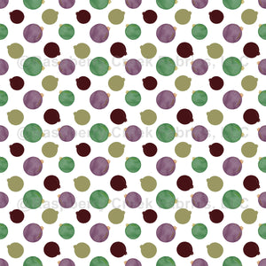 Watercolor style holiday ornaments with gold details on white. Purple, red, gold and green Christmas baubles. Coordinate for the Teddy Bear Christmas Collection. Small Scale