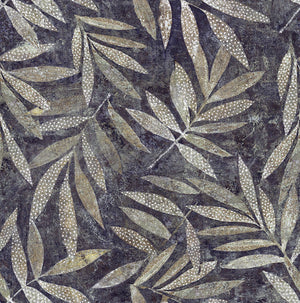 A textured leaf, all-over pattern in natural shades on a dark, almost black background. This design is available in other colour-ways.
