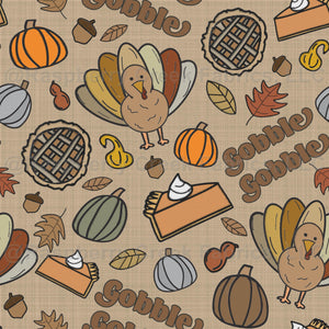 Thanksgiving print featuring turkeys, pumpkin pie and pumpkins. I like to scale it at 8x8 for a universal print size.