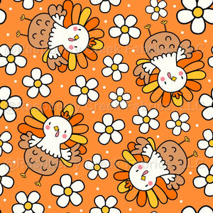 Thanksgiving Turkeys and Daisy Flowers Orange