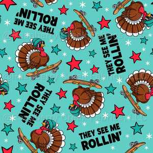 They See Me Rollin' Skateboarding Turkeys on Blue