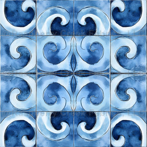 A rhythmic swirl of ocean blues and hand-painted tile waves, Tile and Tidal brings chic coastal charm to any space or seaside escape.