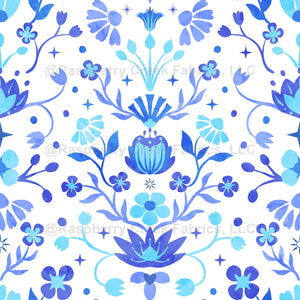 Timeless Blooms in blue and white features classic, elegant florals that create a fresh, serene, and sophisticated touch for any project