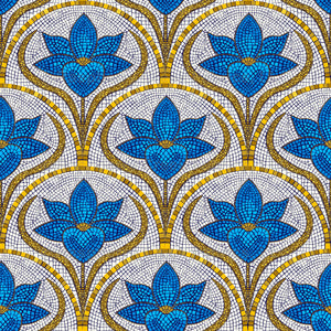 This design is inspired by Byzantine mosaics of Galla Placidia, in Ravenna, Italy