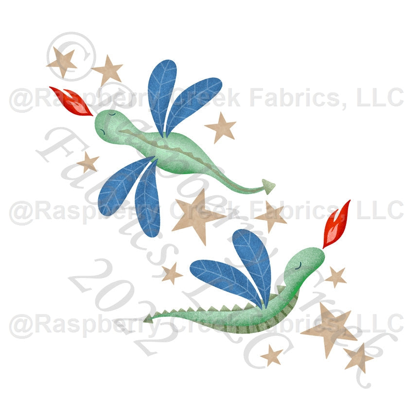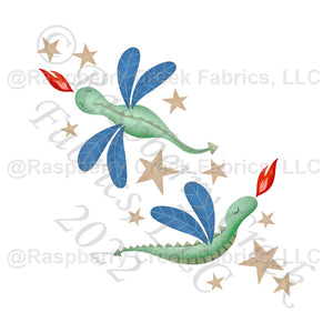 Tonal Azure Blue Seafoam Sage Red and Khaki 'Dragon'fly Star Panel, Enchanted by Krystal Winn Design for CLUB Fabrics