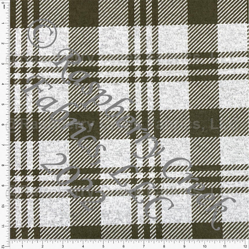 Tonal Oive Green and Grey Plaid Brushed Heathered Hacci Sweater Knit Fabric, CLUB Fabrics