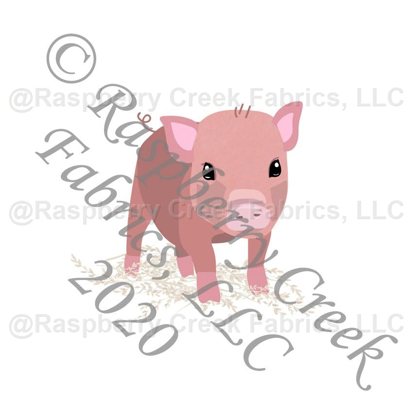 Tonal Pink and Mauve Baby Pig Panel, Baby Animals by Elise Peterson for Club Fabrics